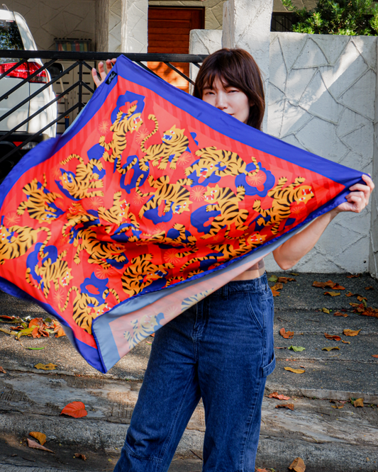XL Silk Print Mix Scarf - TOUSLING TIGERS 🐅