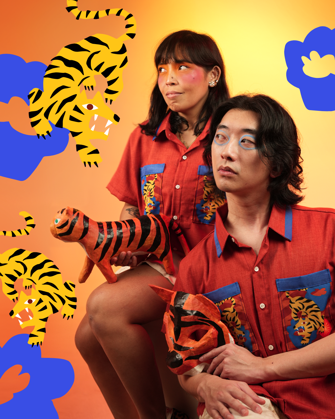 Playful cropped boxy fit polos designed for everyday wear, featuring colorful pockets with original digital illustrations by Miel