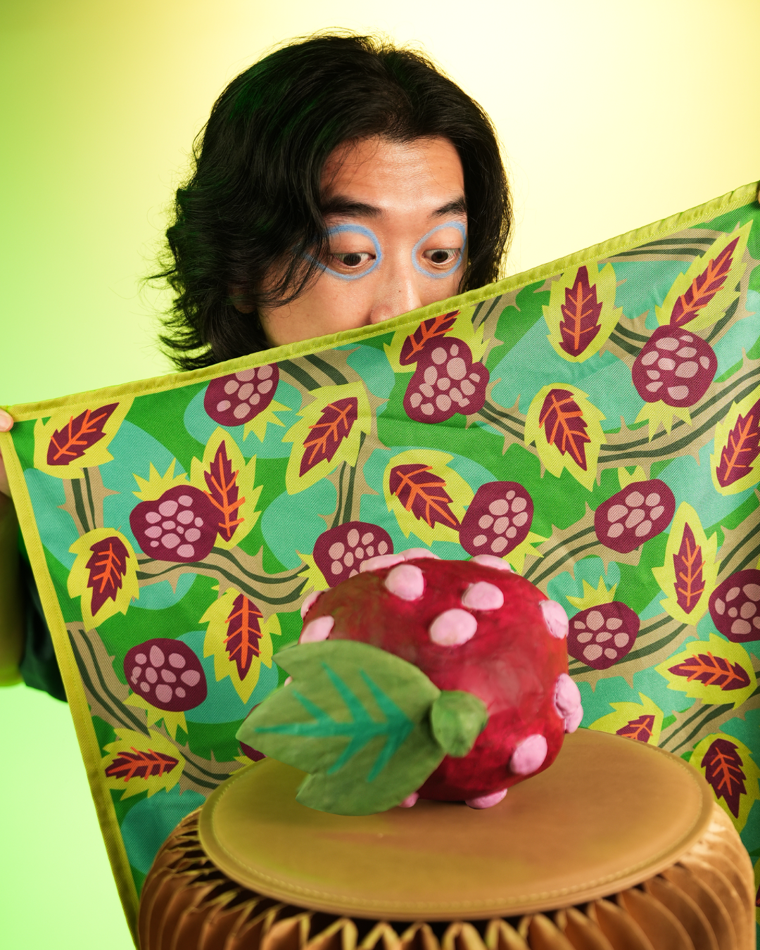 A multipurpose accessory in bright bold patterns featuring original digital illustrations by Miel. Size: 23in x 23in